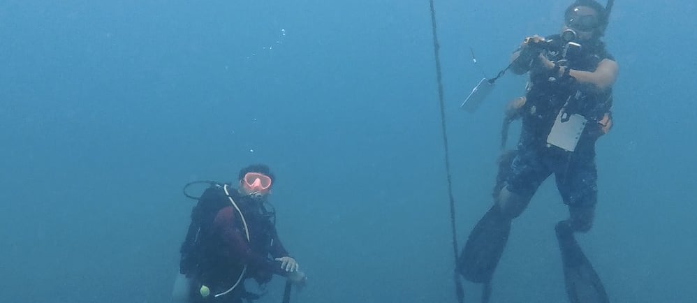 Concept: Underwater navigation is challenging due to the lack of reference points, but it’s essential for finding your way back to the starting point or the boat.
